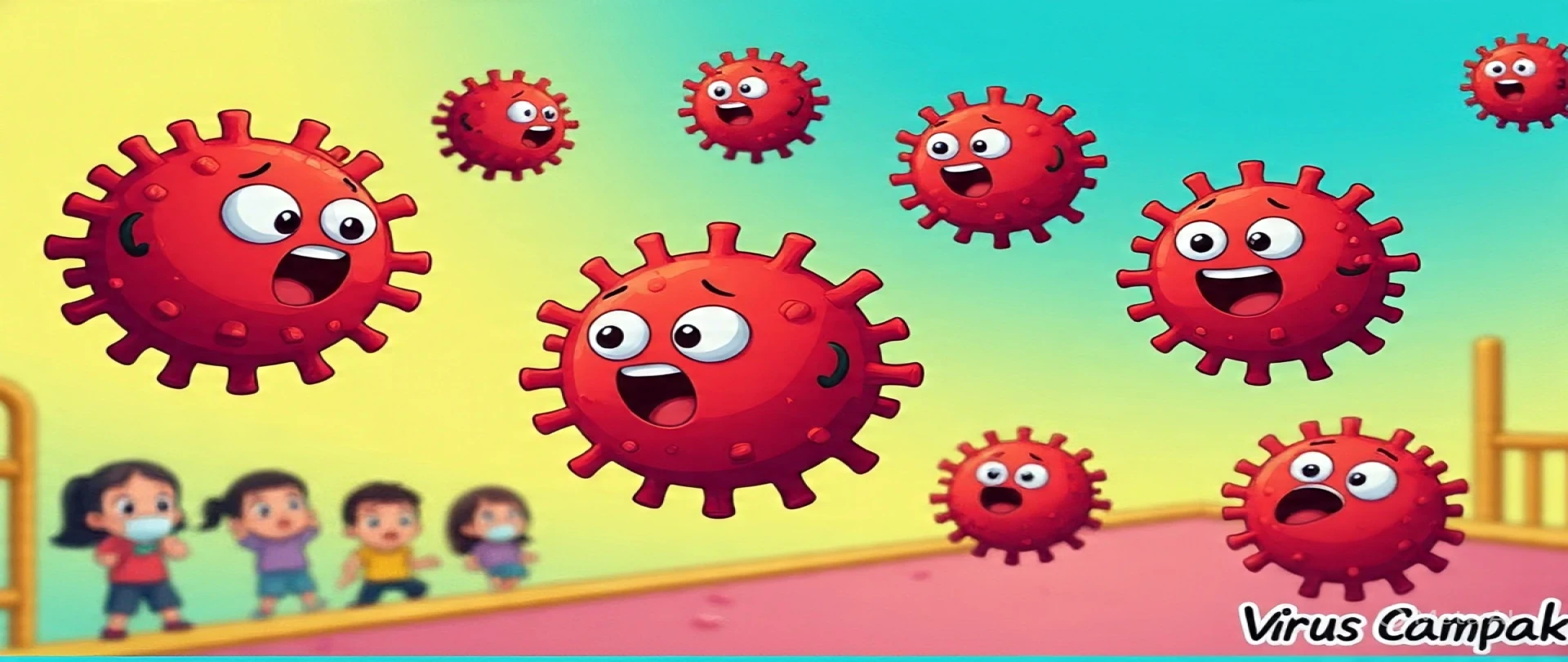 Bayangin virus campak itu kayak glitter yang super ringan. Kalau ada teman yang sakit campak, virusnya terbang waktu dia:
