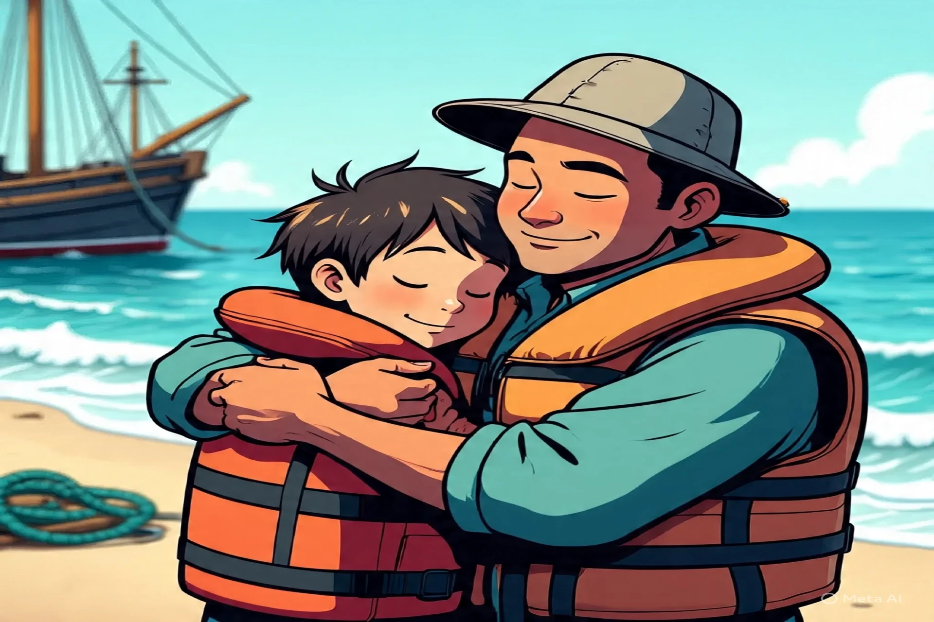 Ayah Buana sangat gembira melihat anaknya kembali dengan selamat. Ia memeluk Buana dengan erat dan meminta maaf karena tidak mempercayai kemampuan anaknya. Buana berjanji pada ayahnya bahwa ia akan terus belajar dan meningkatkan kemampuan dirinya untuk menjadi seorang nelayan yang hebat.